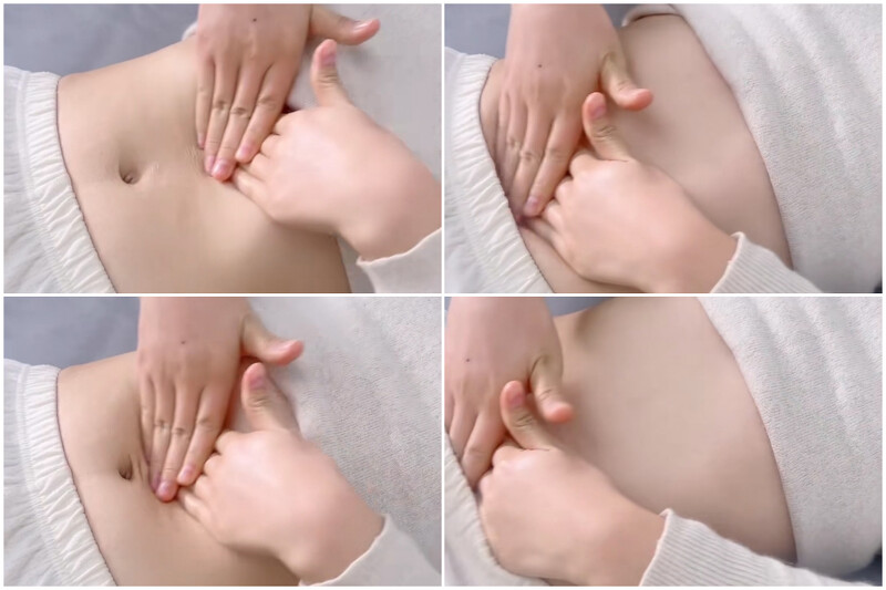 从心窝中脘穴位置(肚脐正上方约10.5cm处),往下一直推到下腹部,重複20次左右,推的时候如有感觉气团在游走就是正确的动作了!