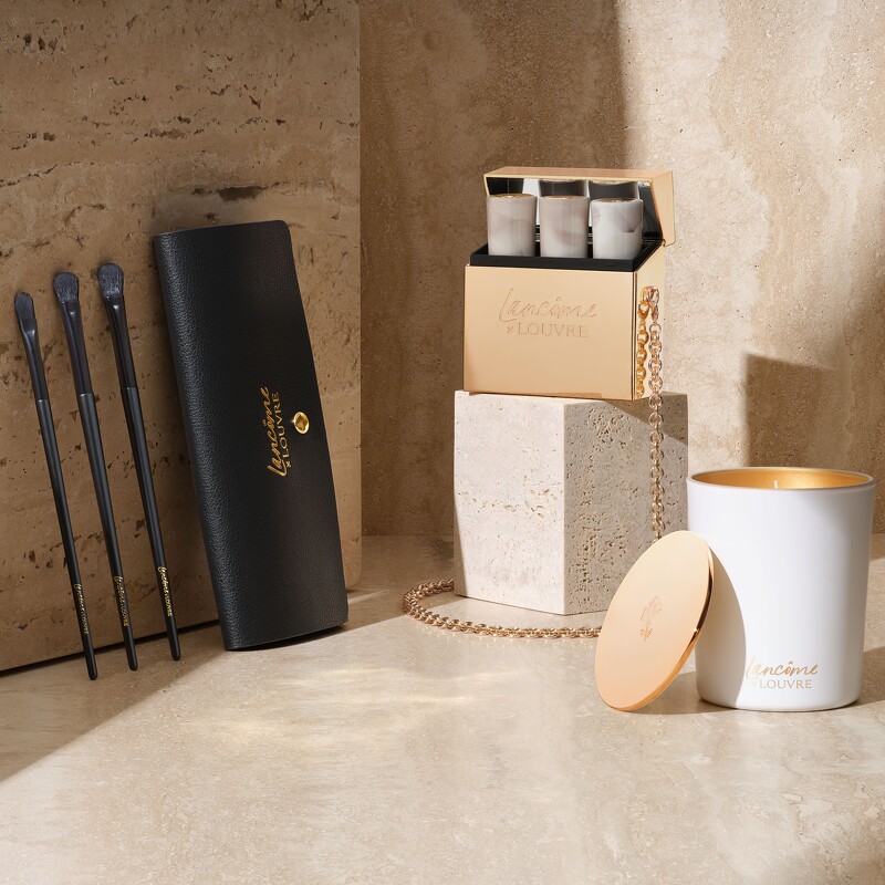 为纪念兰蔻与罗浮宫联名,特别推出三款独一无二的精緻美妆配件: